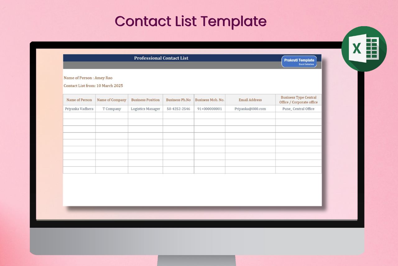 Download our Contact List Template in Excel to easily organize names, phone numbers, and emails. Simple, customizable, and user-friendly, it helps you manage contacts efficiently for personal or business use.