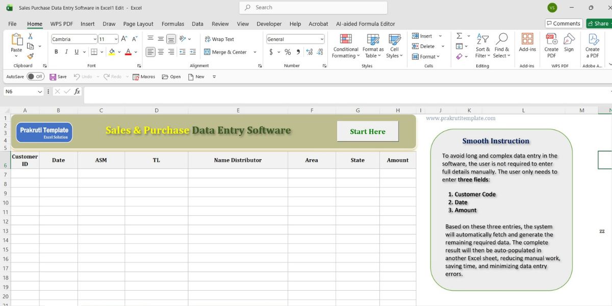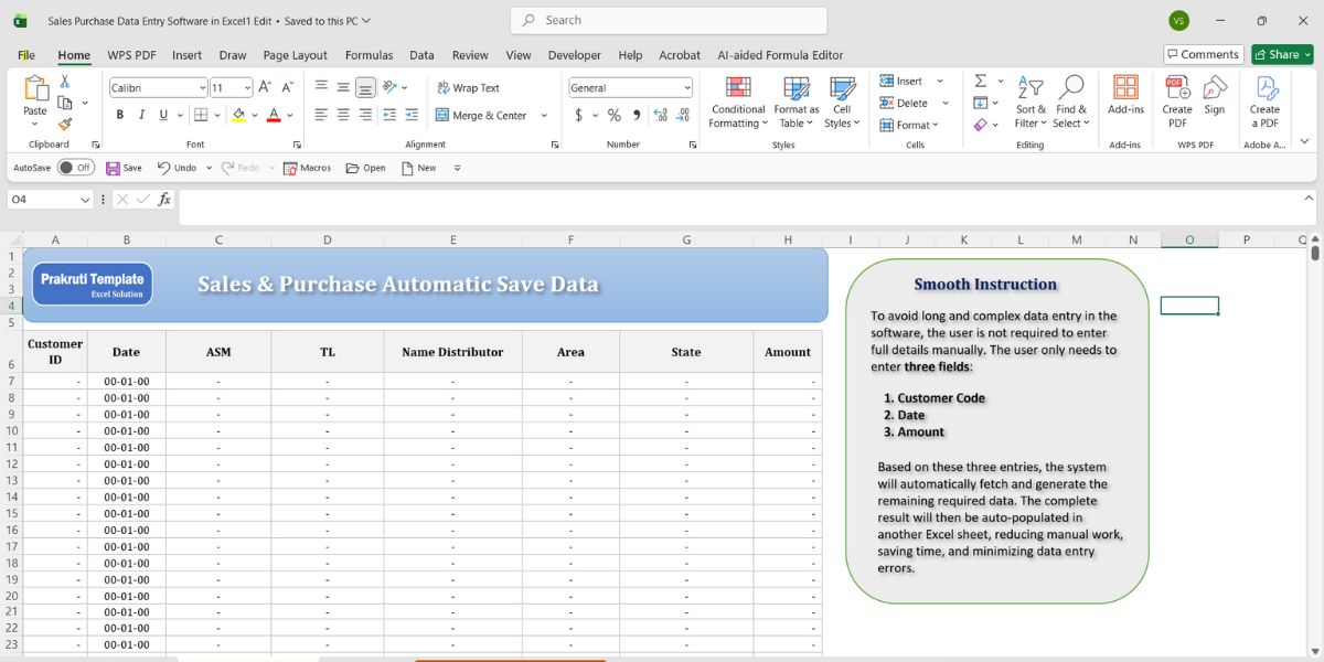 Professional Sales & Purchase Data Entry Software in Excel Template